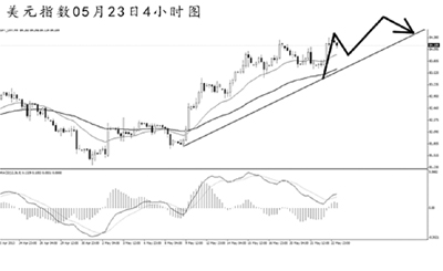 從圖上看,美元指數(shù)升破84.05的前方高點之后持續(xù)盤整,最終價格在伯南克講話的刺激下再度沖高,上方空間被進一步打開。小時圖繼續(xù)產(chǎn)生新的MACD頂背離信號,多頭動能仍在減弱。4小時圖均線系統(tǒng)依托排列,目前需重點關(guān)注美元指數(shù)能否順利站穩(wěn)在84一線上方,以判斷后市非美貨幣的下跌勢頭。