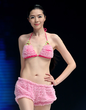 2014浩沙中國泳裝流行趨勢發(fā)布21日在北京“水立方”舉行,發(fā)布會上展示了即將引領時尚潮流的上百套新款泳裝。