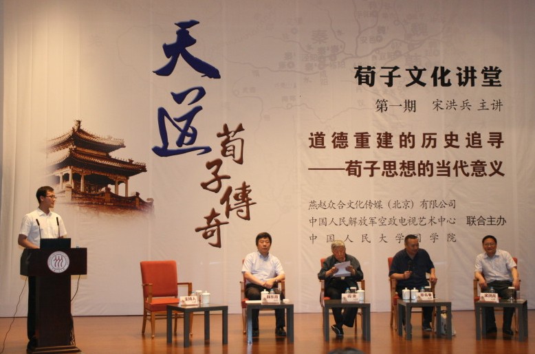 6月13日,大型歷史題材電視劇《天道-荀子傳奇》校園巡講系列活動第一講在中國人民大學舉辦;顒佑裳嘹w眾合文化傳媒(北京)有限公司、中國人民解放軍空政電視劇藝術(shù)中心和中國人民大學國學院共同主辦。著名劇作家閻肅作為電視劇總顧問出席了活動。