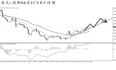 美元兌瑞郎一路上沖,雖然上漲斜率略顯平緩,但趨勢保持良好。4小時圖上看,目前匯價正在考驗道氏高點0.9415的阻力,升破方可打開進一步的上行空間。小時圖均線系統(tǒng)依托排列,同時匯價受到上升趨勢線的支撐,后市仍有較為強勁的走高動力。在趨勢線被有效跌破之前,可繼續(xù)抱以看漲思路。