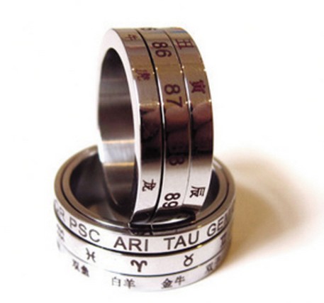 戒指由一個母環(huán)和三個子環(huán)組成,子環(huán)上分別刻有30個日期、七天的星期英文和12個月的英文簡稱,這樣可以準確定位當前這一天的記錄,轉(zhuǎn)動子環(huán)即可組成一個專屬的幸運日。
