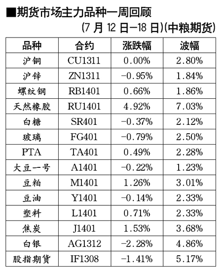 期貨市場(chǎng)主力品種一周回顧[7月12日-7月18日]