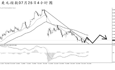 美元指數(shù)連續(xù)小幅創(chuàng)新低,短線MACD發(fā)生了角度明顯的底背離信號,下跌動能持續(xù)減弱。4小時圖均線系統(tǒng)保持良好的壓制效果,主趨勢仍然向下。但由于下降趨勢線已被小幅升破,美元指數(shù)面臨一定的上調(diào)壓力。關(guān)注82.40,只有價格站穩(wěn)在此位置上方,美元指數(shù)才能展開較為強勁的反彈走勢。