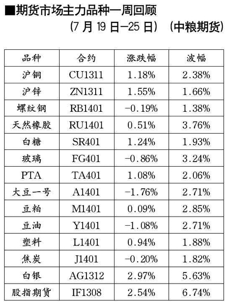 期貨市場主力品種一周回顧[7月19日-7月25日]