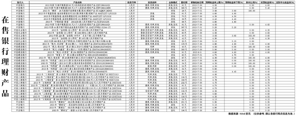 在售銀行理財(cái)產(chǎn)品[2013-07-12]