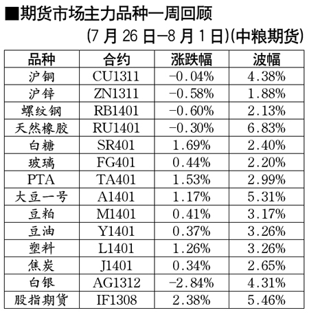 期貨市場(chǎng)主力品種一周回顧[7月26日-8月1日]