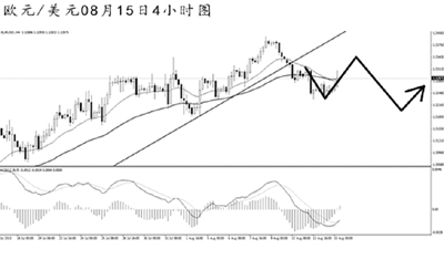 歐元兌美元將上升趨勢線跌破后迅速下行,此前4小時圖持續(xù)的MACD頂背離信號發(fā)揮了效果。從空間上看,歐元下方的強(qiáng)支撐在道氏低點(diǎn)1.3190。短線匯價面臨一定的上調(diào)壓力,但由于日線圖強(qiáng)阻1.3415橫亙在上,歐元再創(chuàng)新高之前,做多的風(fēng)險較大。預(yù)計歐元調(diào)整過后仍有望繼續(xù)走低。