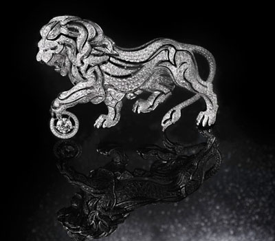 2013年Chanel(香奈兒)最新推出的「Sous Le Signe Du Lion」(Under the Sign of Leo)頂級珠寶系列共以4種(正面像、徽章、雕刻、側(cè)面像)形式表現(xiàn),58件新作,11個系列呈現(xiàn)璀璨卓越作品,演譯象征了香奈兒女士的代表動物——各種不同獅子造型。