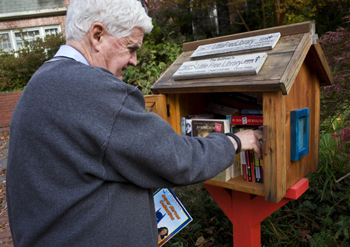 網(wǎng)絡時代,不少人喜歡用電子書、手機或上網(wǎng)本閱讀,不過,美國近幾年刮起一股圖書館風:一個個迷你圖書館如雨后春筍般冒出來,供大家免費借閱,只要記得“取走一本,放回一本”就可以。這種迷你圖書館不僅傳播了書墨香,還增進了鄰里之間的交流,風行全美,并且流傳至其他國家和地區(qū)!