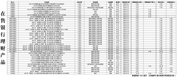 在售銀行理財(cái)產(chǎn)品[2013-12-06]