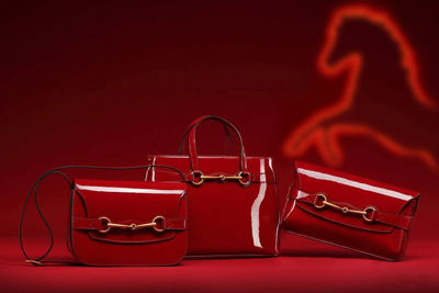 Gucci(古馳)為馬年推出特別系列,包括Bright Bit手提包,小巧肩背包和手拿包,亮漆皮材質(zhì)采用了中國人春節(jié)最傳統(tǒng)的大紅配色。雖然沒有出現(xiàn)馬的形象,但品牌著名的設(shè)計標(biāo)識之一馬銜扣已經(jīng)足以代表馬年的主題。