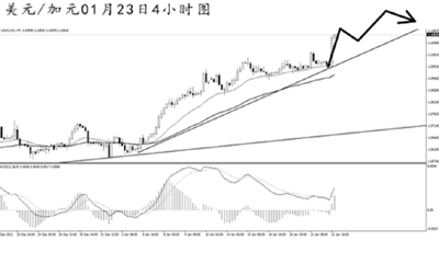 美元兌加元本周中全力上沖,日線圖上看,匯價(jià)仍然保持極高的上漲斜率,均線系統(tǒng)多頭排列。4小時(shí)圖雖然發(fā)生了角度明顯的MACD頂背離信號(hào),但由于遲遲未能展現(xiàn)出強(qiáng)勁的下跌動(dòng)能,匯價(jià)并沒有展開較為明顯的下調(diào)走勢(shì)。近期上方?jīng)]有強(qiáng)勁的阻力點(diǎn)位,預(yù)計(jì)匯價(jià)小幅下調(diào)后仍將保持上沖態(tài)勢(shì)。