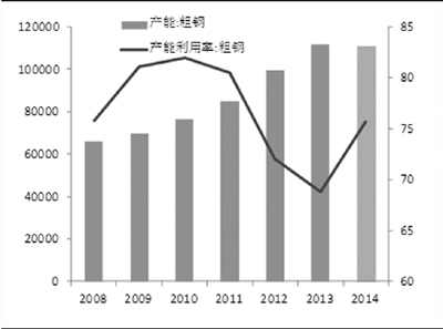 | 2014年粗鋼產(chǎn)能利用率或小幅回升 |