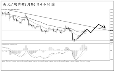 美元兌瑞郎此前的強勁下跌小幅刺破了日線圖前方低點支撐0.8800,此后匯價反彈上行,力度較強。4小時圖上看,MACD處于多頭動能充盈的階段,下降趨勢線的阻力在0.8920,由于均線系統(tǒng)已被刺破,預計匯價將逐步向此位置發(fā)起沖擊,但若想展開更為強勁的上沖,必須將0.8930一線的道氏高點阻力升破。