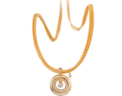 華洛芙全新“真正的喜悅”系列護(hù)身符吊墜從兩方面捕獲了佩戴著的心-從容挑選自己深愛的幸運(yùn)色和19種奇妙的佩戴方式。真正的喜悅護(hù)身符吊墜的外環(huán)由活潑時(shí)尚的顏色與至純的18k黃金相互輝映,構(gòu)成華洛芙經(jīng)典風(fēng)格的抽象羽翼,同時(shí),也為中心的單顆鉆石和整環(huán)鑲鉆的內(nèi)環(huán)增加了現(xiàn)代時(shí)尚的氣息。中心的獨(dú)立鉆石與整環(huán)鑲鉆的內(nèi)環(huán)都懸掛于一個(gè)精致的珠寶卡扣之上。每個(gè)護(hù)身符環(huán)都用絲綢流蘇裝飾,賦予整個(gè)項(xiàng)鏈靈動活潑的韻味和宛如陽光般的溫暖。佩戴者可以在任何時(shí)候根據(jù)不同的心情改變護(hù)身符吊墜的形象,既可以挑選您自己的幸運(yùn)色,也可以變換為時(shí)尚簡約又經(jīng)典復(fù)古的白色琺瑯面,亦或者是選擇閃閃發(fā)光的流蘇吊墜。如此的多面性讓擁有這款護(hù)身符吊墜的女性無比幸運(yùn)。