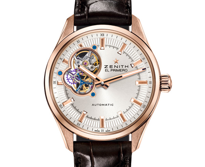 Primero旗艦系列的其他機(jī)芯一樣,它每小時(shí)可達(dá)到36000次的高振頻,相當(dāng)于每秒鐘震動(dòng)10次。機(jī)芯嚴(yán)絲密合、造型精致、精準(zhǔn)可靠:每個(gè)夾板、結(jié)構(gòu)和零件的位置都經(jīng)過了仔細(xì)研究,以優(yōu)化其性能。表殼直徑40毫米,采用玫瑰金或精鋼材質(zhì),銀色表盤上的開心設(shè)計(jì)能以與眾不同的方式,親眼觀察到El