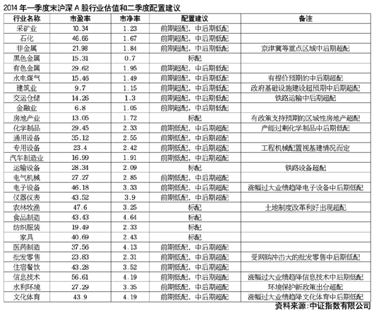 2014年二季度前期,建議適當(dāng)超配金融、有政策支持預(yù)期的區(qū)域性房地產(chǎn)和上游行業(yè),低配中游制造行業(yè)和下游消費(fèi)行業(yè);二季度中后期,建議低配金融房地產(chǎn)和上游行業(yè),超配中游制造行業(yè)和下游消費(fèi)行業(yè)。對個別行業(yè)也有例外建議。