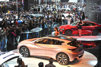 4月21日,在2014(第十三屆)北京國(guó)際汽車展覽會(huì)上,參觀車展的觀眾如潮,本次共展示車新能源車79臺(tái),再次刷新北京車展的紀(jì)錄。記者 李文明 攝