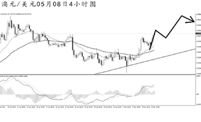澳元兌美元,短線重新拾得漲勢。4小時圖均線系統(tǒng)已經(jīng)重新轉(zhuǎn)為了向上的排列,MACD顯示多頭動能占優(yōu)。目前需重點關(guān)注前方高點0.9460的阻力,預計澳元將向此位置發(fā)起沖擊,并且升破的概率偏大。