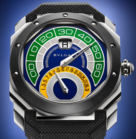 Bi-Retro腕表向巴西致意;設(shè)計上由巴西國旗的色彩組成,從各方面來看都是劃時代的創(chuàng)舉。這款Octo Bi-Retro