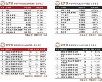 金羅盤5月券商研究能力排行榜顯示,該月位列榜單前十的券商,薦股成功率集中在23%至28%。這一成績只能勉強(qiáng)進(jìn)入4月券商能力排行榜后十名的位置。