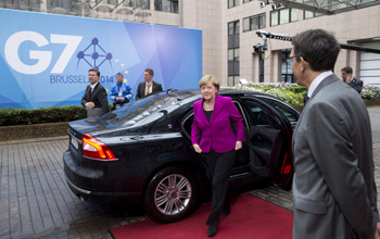 德國總理默克爾乘坐沃爾沃S80到達(dá)會議現(xiàn)場
