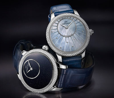 雅克德羅時分小針盤腕表于2012年推出全新女裝表款,表殼直徑僅35毫米,偏心時分顯示盤設(shè)于12時位置,匠心設(shè)計別具一格。