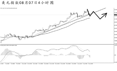 美元指數(shù)在經(jīng)過短暫的調(diào)整后,重新迎來強(qiáng)勢,本周公布的美國7月非制造業(yè)錄得2005年12月以來的最快增長速度,同時美國6月耐用品訂單好于預(yù)期,受此影響,美元指數(shù)上破前期阻力高點(diǎn)。