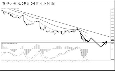 歐元兌美元在創(chuàng)出新低后持續(xù)盤整。從日線圖上看,下降趨勢線的壓制作用完好,匯價斜率陡峭,逐步遠離此線,后市發(fā)生上調(diào)的風險仍然較大。4小時圖均線系統(tǒng)壓制排列,MACD已經(jīng)發(fā)生了角度明顯的底背離信號。短線沒有構(gòu)筑出良好的次要節(jié)奏調(diào)整,后市面臨一定的反彈壓力。在匯價再創(chuàng)新低之前,做空需謹慎。