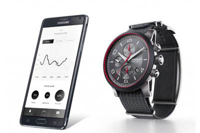 此外,透過遺失搜尋定位功能,配戴者在三十公尺范圍內(nèi)可透過此功能搜索到配備有電子表帶的腕表與智能型手機(jī)。只要輕觸電子表帶即可透過此功能找到智能型手機(jī),或者使用智能型手機(jī)上的應(yīng)用程序找到手表。電子表帶裝置有一內(nèi)建觸控螢?zāi)伙@示器,可顯示資料并瀏覽其功能,即便是在白天也能清楚讀取螢?zāi)伙@示的資料。此一技術(shù)裝置包覆于精鋼外殼內(nèi),并以科技橡膠保護(hù),直穿式表帶的設(shè)計使其能夠簡單地進(jìn)行安裝固定與調(diào)整。