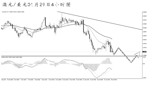 澳元兌美元強(qiáng)力沖高后再度回落。從日線圖上看,匯價(jià)的下跌力度繼續(xù)加強(qiáng),主下行趨勢(shì)延續(xù)良好。4小時(shí)圖均線系統(tǒng)保持壓制排列,整體在對(duì)前方的下跌進(jìn)行次要節(jié)奏調(diào)整。由于澳元已強(qiáng)力跌破0.8000的整數(shù)關(guān)口位,徹底打開(kāi)了月線圖級(jí)別的下跌空間。短線仍可繼續(xù)看空澳元,穩(wěn)健投資者可等待匯價(jià)再創(chuàng)新低后再行入場(chǎng)。
