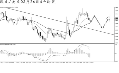 ▲澳元兌美元沖高回落。日線圖均線系統(tǒng)已被小幅刺破,道氏高點阻力在0.7910,澳元雖小幅刺破,但必須站穩(wěn)上方之后才能打開進一步的上沖空間。4小時圖空頭動能重新占據(jù)主導。短線需要關注被升破的下降趨勢線支撐0.7700一線下方。澳元有望向此位置發(fā)起調整,但只要不回到趨勢線下方,后市仍有重新走高的動力。