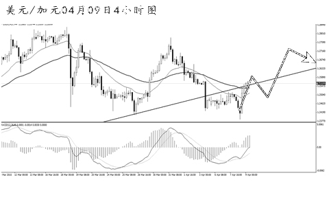 美元兌加元跌破了上升趨勢(shì)線之后再度發(fā)力上攻。日線圖,均線系統(tǒng)保持依托狀態(tài),道氏低點(diǎn)在1.2350,美加只有站在此位置下方才能結(jié)束中線的漲勢(shì)。4小時(shí)圖,匯價(jià)反復(fù)穿越均線系統(tǒng),在趨勢(shì)線下方震蕩整理。經(jīng)過(guò)連續(xù)幾根陽(yáng)線的上攻,短線美加重獲上漲勢(shì)頭。但在價(jià)格觸及1.2600之前,暫不考慮激進(jìn)做多。