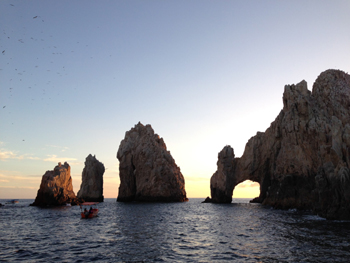 洛斯卡沃斯(Los Cabos)位于下加利福尼亞半島最南端,地處沙漠卻三面環(huán)海,一年四季陽(yáng)光明媚。環(huán)境幽靜且民風(fēng)淳樸,來到這里可以真正體會(huì)到陶淵明古文中所描述的 “忘路之遠(yuǎn)近,忽逢桃花林”的境界?茽柼厮购:吞窖笤诖私粎R,由于太平洋海水冰冷呈深藍(lán)色,而科爾特斯海常年溫度維持在24攝氏度左右海水顏色透明而清澈,因此位于兩海交匯處的洛斯卡沃斯的海水呈現(xiàn)出美麗的天藍(lán)色且溫度更為宜人。西方人稱洛斯卡沃斯為“世界的盡頭”,佇立在這里,眼前盡是一望無垠的海洋,身后便是廣袤的大漠,自己仿佛置身于大地的盡頭一般。