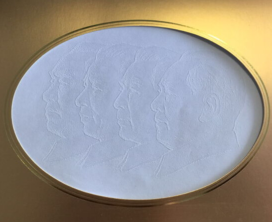 特別要提出的是,上世紀(jì)七十年代末期,當(dāng)時(shí)對10元面額(大團(tuán)結(jié))的鈔券需求特別強(qiáng)烈,已形成了應(yīng)用缺口。經(jīng)過中國人民銀行批準(zhǔn),印制10元券的整版規(guī)格從原來的24K(整版24單小張聯(lián)接)改為35K(整版35單小張聯(lián)合),這樣,可以在水、電、汽消耗基本不變的情況下提高產(chǎn)品的生產(chǎn)產(chǎn)量約百分之五十左右。這對當(dāng)時(shí)國民經(jīng)濟(jì)的發(fā)展是個(gè)極大的促進(jìn)。但是鈔票鈔券紙的水印位置有了根本的變化,由原來的豎向排列改為橫向排列,由于造紙機(jī)生產(chǎn)過程中紙張縱向延伸,橫向收縮,原來的模具已不能使用,必須重新制作一個(gè)新的變形方向的模具,而且生產(chǎn)出來的水印(天安門放光芒)要與原來的效果一致。這是一個(gè)技術(shù)性很強(qiáng)并且制作難度很大的工作任務(wù)。