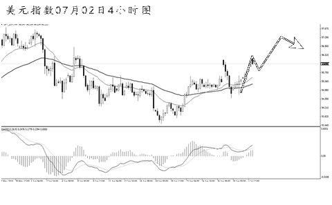 美元指數(shù)再度回到周一跳空高開的位置附近。從日線圖上看,美元指數(shù)仍然圍繞均線系統(tǒng)反復(fù)穿越,上方強(qiáng)阻力在97.75,美元指數(shù)必須升破此位置后才能進(jìn)一步向前方高點(diǎn)發(fā)起沖擊。4小時(shí)圖強(qiáng)動(dòng)能交替節(jié)奏仍然十分頻繁,后市若想發(fā)起進(jìn)一步的上攻,必須重新站穩(wěn)在96.30一線的高點(diǎn)上方。預(yù)計(jì)短線小幅調(diào)整過(guò)后仍有繼續(xù)走強(qiáng)的動(dòng)力。