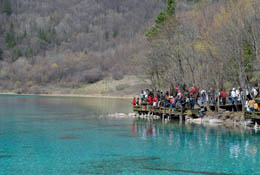 被譽為“童話世界”、“人間仙境”的九寨溝在眾多導演看來,也是拍攝影視劇的天堂。(本報資料照片) | 2006年,以電影《無極》為代表的影視拍攝給風景名勝帶來的破壞,引發(fā)了媒體和影視制作企業(yè)聯(lián)手發(fā)出“綠色影視”的倡導。 2007年3月初,《2006年:中國環(huán)境的轉(zhuǎn)型與博弈》環(huán)境綠皮書的發(fā)表,將中國影視劇拍攝和風景區(qū)環(huán)境保護再次推到了公眾的面前。 今年4月底,廣電總局下發(fā)通知,規(guī)定在自然保護區(qū)核心區(qū)和緩沖區(qū)、風景名勝區(qū)核心景區(qū)內(nèi),禁止進行拍攝活動;在自然保護區(qū)實驗區(qū)、風景名勝區(qū)核心景區(qū)以外范圍、各級文物保護單位保護范圍內(nèi),嚴格限制影視劇拍攝活動。 在影視拍攝破壞風景名勝的事件頻頻被曝光之后,中國終于掀起了“綠色影視”風暴。