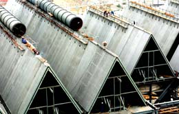 我國首臺(tái)綠色環(huán)保發(fā)電機(jī)組——山西大同二電廠二期工程的60萬千瓦直接空冷發(fā)電機(jī)組。新華社記者:馬毅敏