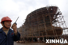 浙江農民在造大船的過程中,從低到高,從土到洋,全面實現(xiàn)了技術飛躍,彰顯出駕馭重工產業(yè)不凡的實力。(本報資料照片)