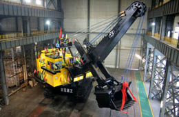 1月26日,國內(nèi)首臺礦用55立方米挖掘機(jī)在山西太重集團(tuán)下線,這是我國2000萬噸級以上大型露天礦成套設(shè)備中的關(guān)鍵設(shè)備,具有完全自主知識產(chǎn)權(quán),可滿足世界上所有露天礦山的采掘條件。新華社記者:武敵 攝
