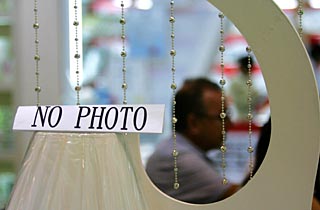| 2007年廣交會上,一個出口展位前掛起了禁止拍照的牌子。新華社記者 壯錦