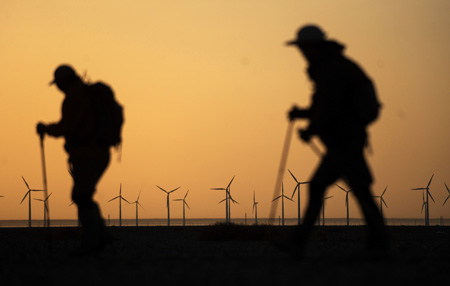 甘肅省風(fēng)能資源豐富,在綿延一千公里的河西走廊上,風(fēng)能資源理論儲量為2.37億千瓦,風(fēng)能總儲量居全國第五位。近年來,甘肅加大風(fēng)電產(chǎn)業(yè)的開發(fā),在甘肅酒泉市,年風(fēng)力發(fā)電量已達(dá)6億千瓦時,成為全國五大風(fēng)力發(fā)電場之一,古老的絲綢之路上正在崛起現(xiàn)代化的風(fēng)電產(chǎn)業(yè)區(qū)。新華社記者