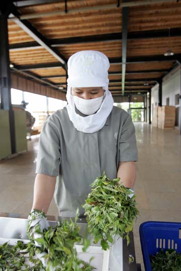 以開(kāi)發(fā)高端旅游產(chǎn)業(yè)聞名的云南柏聯(lián)集團(tuán)2007年進(jìn)入瀾滄縣惠民鄉(xiāng),在景邁山腳建造了一座占地7000多平方米、極具現(xiàn)代氣息的“普洱茶莊園”;走進(jìn)莊園,堪稱(chēng)一次愉快的普洱茶工業(yè)之旅———車(chē)間嚴(yán)格按照萎調(diào)、殺青、揉捻、包裝等等十余道生產(chǎn)工序區(qū)分開(kāi),每個(gè)車(chē)間均配備了一流的機(jī)械設(shè)備,進(jìn)行流水線(xiàn)操作,40余名工人必須穿上一體化工作服、洗三次手、酒精消毒才能獲準(zhǔn)進(jìn)入。