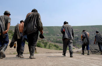 7月27日,海州露天礦最后一批工人走在下班的路上,隨著海州露天礦最后殘煤的運(yùn)出,這些工人將和這個(gè)“大坑”告別。當(dāng)日,遼寧省阜新市海州露天煤礦國(guó)家礦山公園正式開(kāi)園,從而使這個(gè)當(dāng)年亞洲最大的露天煤礦變身為工業(yè)遺產(chǎn)主題公園。新華社記者 姚劍鋒