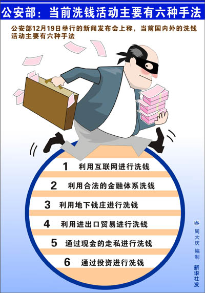 公安部:當(dāng)前洗錢(qián)活動(dòng)主要有六種手法[圖]