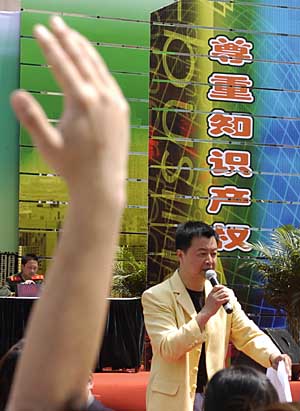 4月25日,為紀(jì)念“4·26”世界知識產(chǎn)權(quán)日,南京市在新街口商業(yè)街廣場舉行知識產(chǎn)權(quán)知識競賽,參賽的不僅有來自企業(yè)、學(xué)校、街道、部隊(duì)的代表隊(duì),許多圍觀市民也踴躍加入到比賽中來。