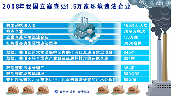 2008年我國立案查處1.5萬家環(huán)境違法企業(yè)