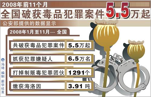全國破獲毒品犯罪案件5.5萬起[圖表]