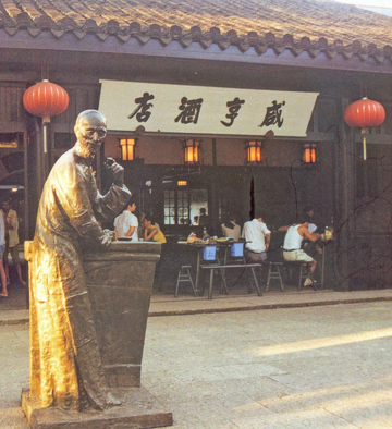 魯迅活著時(shí),為了寫作,長年累月地咳嗽、咳痰、咳血;魯迅長年沒有固定的月薪收入及“灰色收入”,只是個(gè)自由撰稿人,靠一個(gè)字一個(gè)字地在燈下爬格子換取收入。 魯迅死后,魯迅的姓名、肖像甚至連其筆下的人物、地名都成了財(cái)富。咸亨酒店、魯鎮(zhèn)茶座、百草園飯店、阿Q酒家,在紹興市比比皆是。冠以三味、百草園、祥林嫂、孔乙己、阿Q、華老栓的商店及商品充斥紹興,像孔乙己茴香豆、魯鎮(zhèn)牌醬鴨、七斤嫂烏干菜等還注冊(cè)了商標(biāo)。 有商業(yè)眼光的人士敏銳地意識(shí)到魯迅小說《孔乙己》中“咸亨酒店”這4個(gè)字的含金量,便依照小說中描寫的格局在魯迅路上修建了咸亨酒店,在酒店門口放置了孔乙己塑像。游覽紹興的國內(nèi)外游客慕名而來,“咸亨”成了中國馳名商標(biāo),財(cái)源滾滾。 據(jù)紹興市工商局統(tǒng)計(jì),該市以魯迅作品中的人名、地名作企業(yè)名稱或商標(biāo)的已達(dá)300多件。