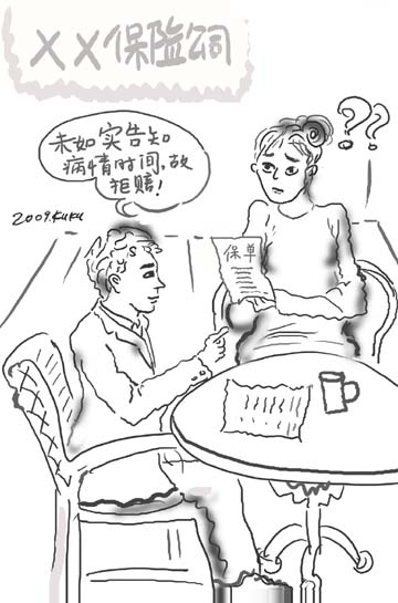 案例:劉先生腸胃不好,由于工作忙一直沒有去醫(yī)院檢查,每次肚子疼就吃一些胃藥來減輕病痛。2006年12月30日,他遇到了一位保險(xiǎn)公司業(yè)務(wù)員上門推銷保險(xiǎn),就購買了10萬元的重大疾病保險(xiǎn)。 在填寫投保單健康告知欄目時,關(guān)于“最近5年是否曾有腹痛癥狀和最近有沒有服用藥物”詢問內(nèi)容,劉先生咨詢業(yè)務(wù)人員是否需要將自己的胃痛填寫上,業(yè)務(wù)人員問劉先生是否在醫(yī)院有病例證明,劉先生說沒有,業(yè)務(wù)人員就說沒事,讓劉先生不要填寫。劉先生當(dāng)時就按照業(yè)務(wù)人員的說法在此項(xiàng)勾選了“否”。 2008年1月,劉先生忽感身體不適,胃部奇痛,到醫(yī)院就診。醫(yī)生問詢劉先生之前胃部是否有過毛病,劉先生說胃疼史有4年并服用過胃藥,醫(yī)生將劉先生口述寫入了病例。經(jīng)過全面檢查,劉先生被確診為胃癌晚期。后診治無效,劉先生不幸病故,所花醫(yī)療費(fèi)共計(jì)14萬元。 事故發(fā)生后,劉先生家屬劉太太及時通過全國服務(wù)熱線報(bào)了案。經(jīng)審核,資料齊全,公司予以受理。但15個工作日后,保險(xiǎn)公司下發(fā)了拒賠通知單,拒賠理由為:被保險(xiǎn)人病例中本人陳述有4年胃痛史,早于投保時間,但被保險(xiǎn)人劉先生在投保時并未如實(shí)告知胃痛情況,未履行如實(shí)告知義務(wù),故保險(xiǎn)公司拒絕賠償。